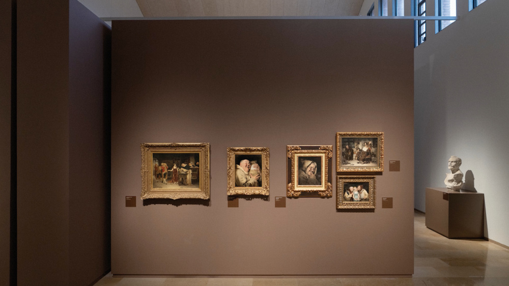 El recorregut expositiu comença a l’esquerra amb l’obra intimista de Francesc Gimeno, continua amb l’escultura expressiva i monumental d’Agustí Querol, i finalitza amb les obres d’Antoni Casanova, de temàtica anecdòtica. Aquesta disposició, tot i no seguir un ordre cronològic, enriqueix el discurs combinant pintura i escultura.